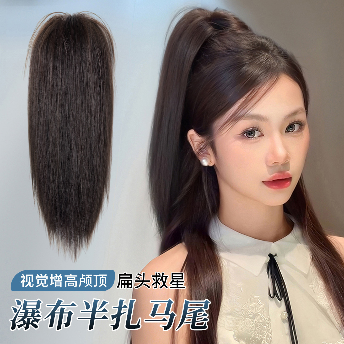 假发辫子女仿真发抓夹瀑布半扎直马尾扁头救星高颅顶增发量假马尾
