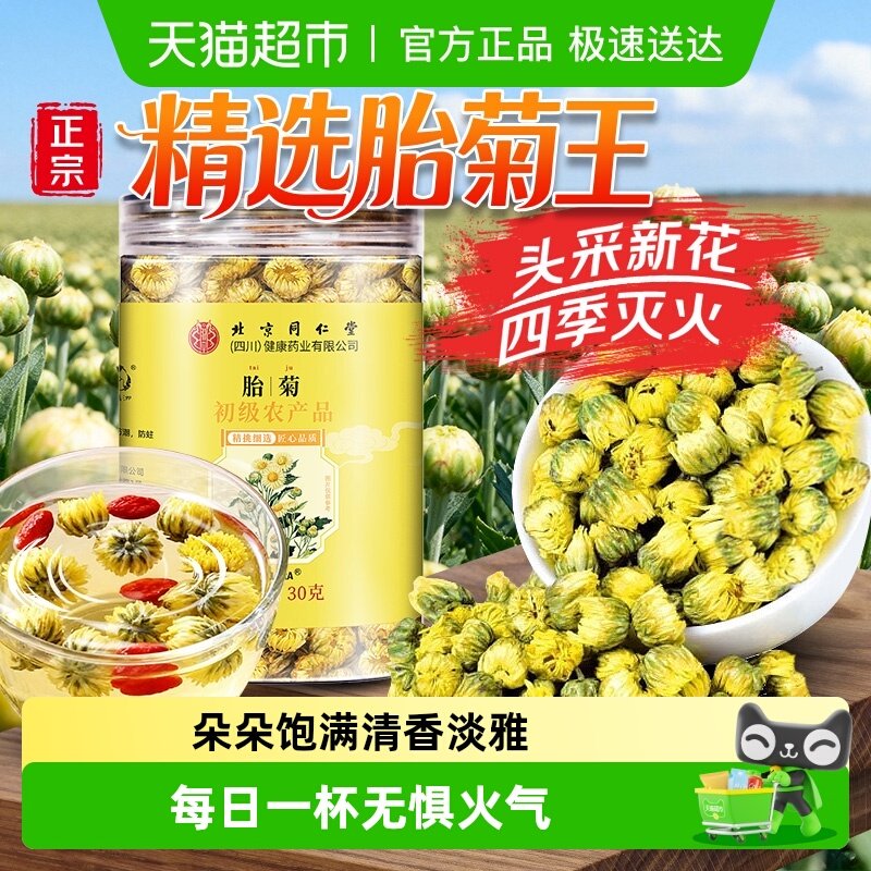 北京同仁堂菊花茶胎菊白特正品级贡菊花杭凉茶叶干清火官方旗舰店