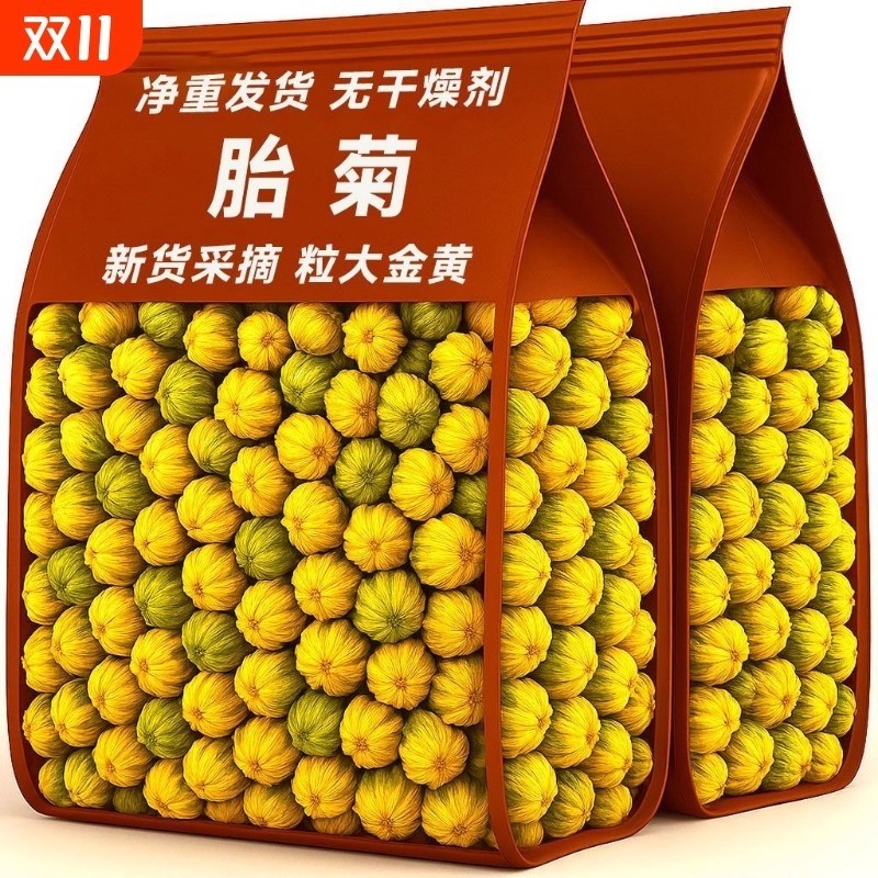菊花茶茶无添加无硫袋装头茬茶胎菊茶菊花茶胎菊王头采500g正宗
