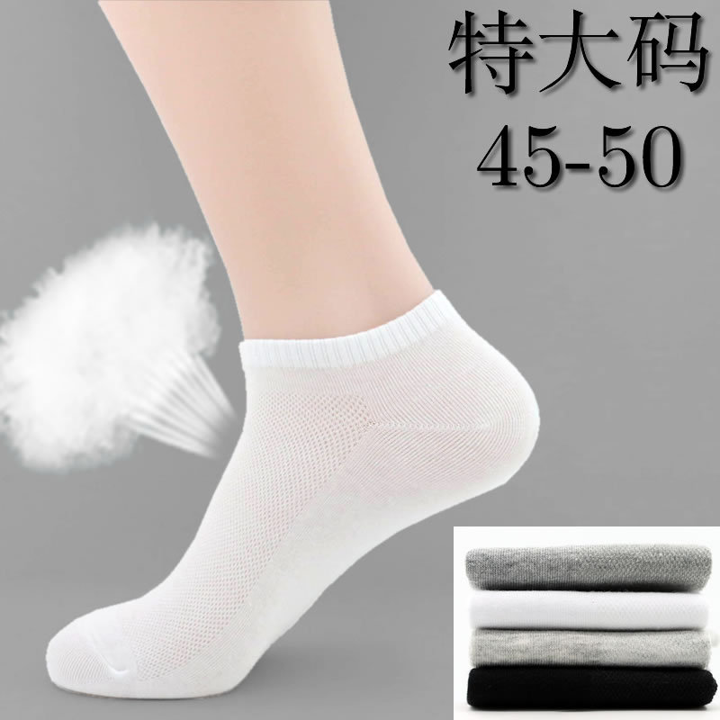 特大码透气纯棉男袜船袜透气薄棉大码夏季加大号网眼短袜45-50码