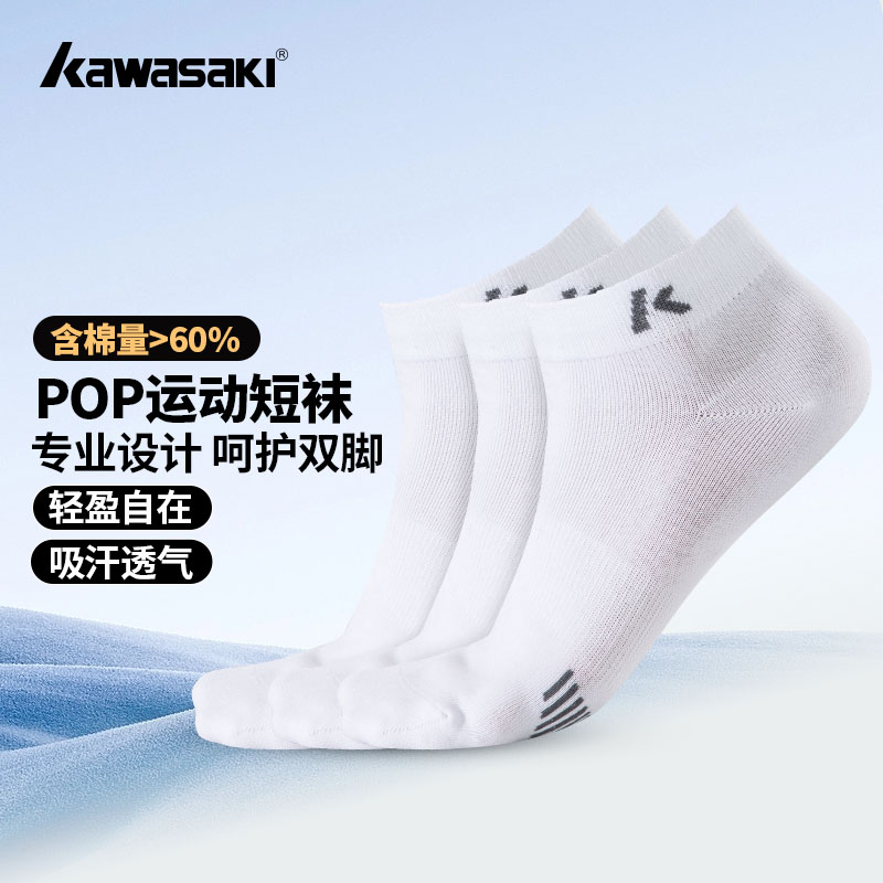 川崎运动短袜休闲袜子羽毛球夏天男袜船袜跑步篮球吸汗简约棉3双