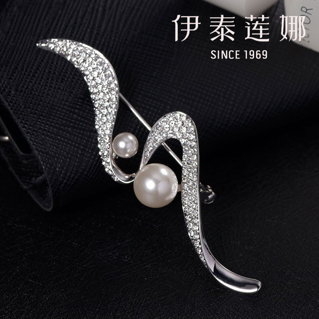 正品伊泰莲娜别针披肩扣仿珍珠胸花婉约水晶胸针女礼盒情人节礼物