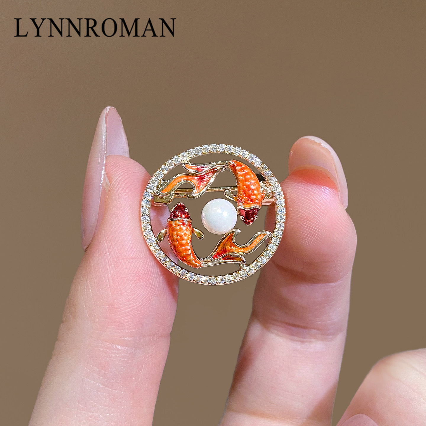 LYNNROMAN吉祥锦鲤水晶胸针女高级轻奢精致时尚气质珍珠胸花别针