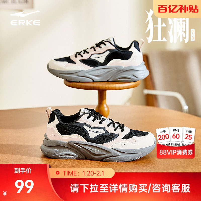 鸿星尔克蜂刺运动鞋秋冬新款女鞋休闲鞋软底老爹鞋一脚蹬德训鞋子