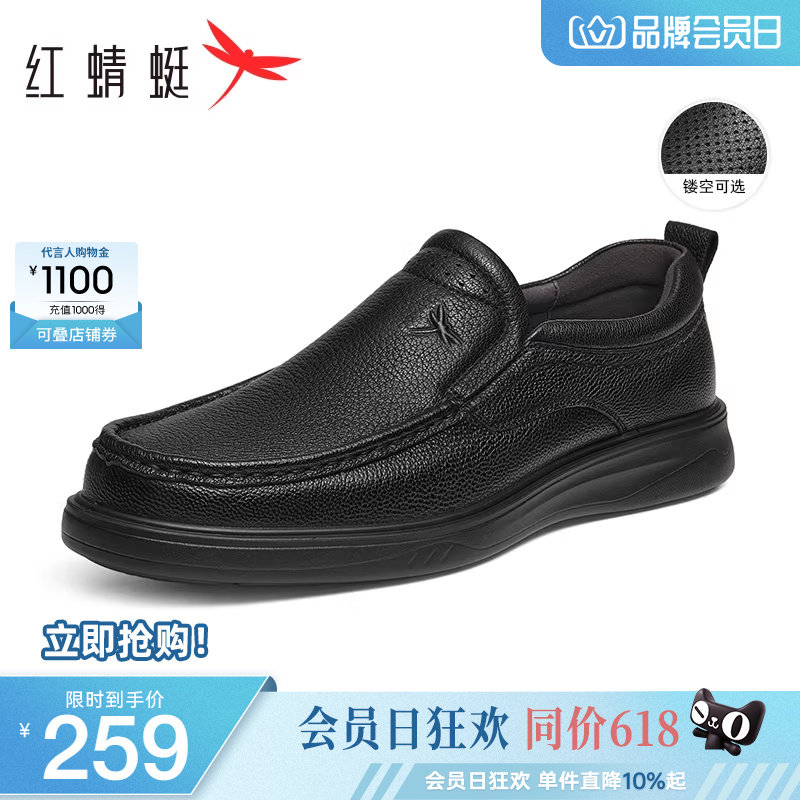 红蜻蜓男鞋牛皮透气中老年休闲商务皮鞋正品高档一脚蹬懒人爸爸鞋