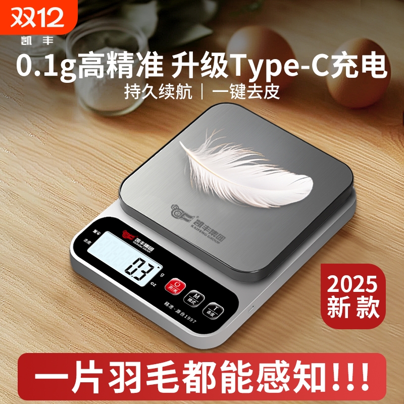 凯丰高精度电子秤厨房精准0.1g克秤家用小型烘焙克重称食物秤称重