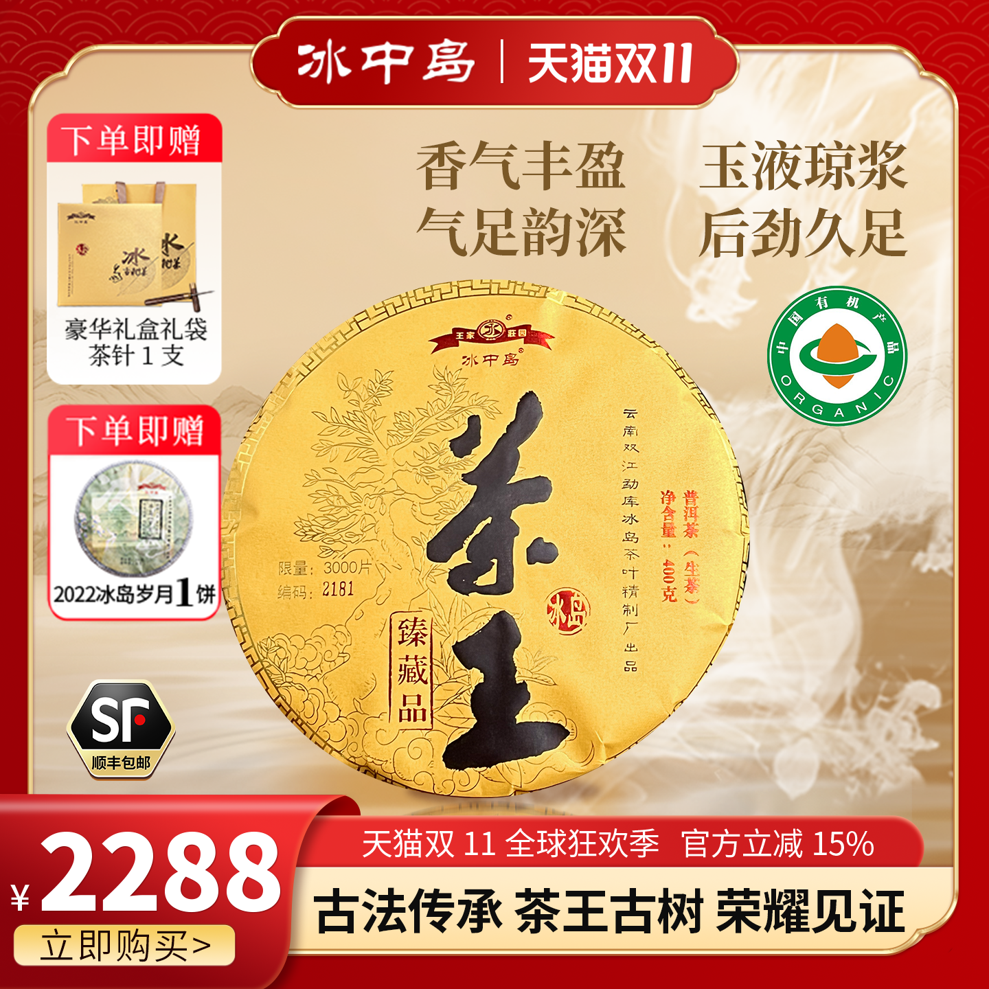 冰中岛2022冰岛茶王400g云南普洱茶冰岛普洱茶生茶冰岛古树茶春茶