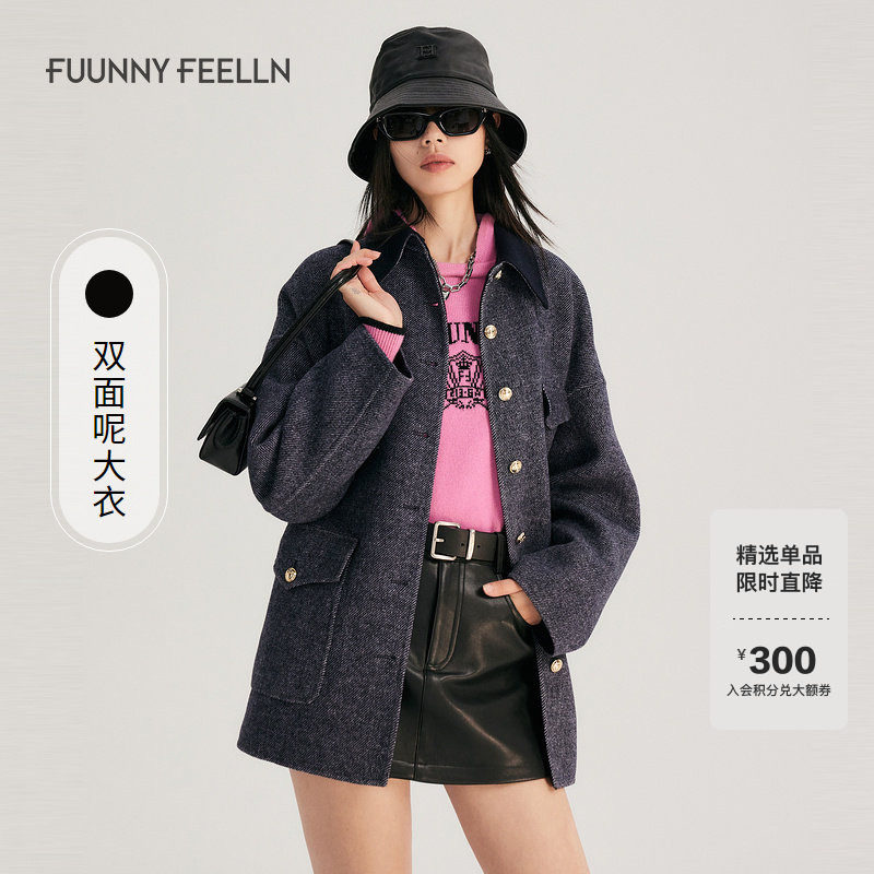 【异色双面呢】FF仿佛冬季新款毛呢外套女时尚气质翻领休闲大衣