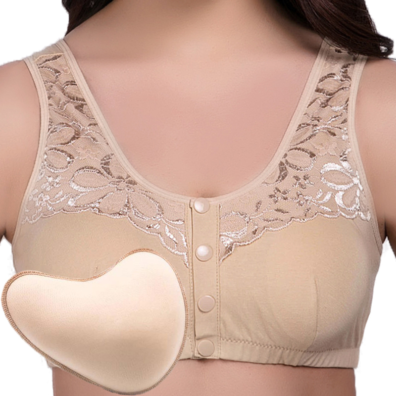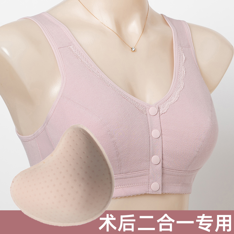 棉质乳腺胸罩术后义乳文胸二合一透气假乳房专用无钢圈前扣内衣女