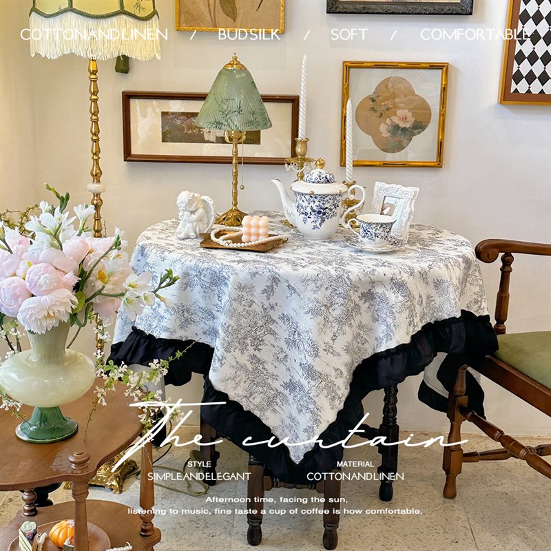 法式复古宫廷风荷叶边长方形台布防尘布美式乡村茶几餐桌布盖巾布