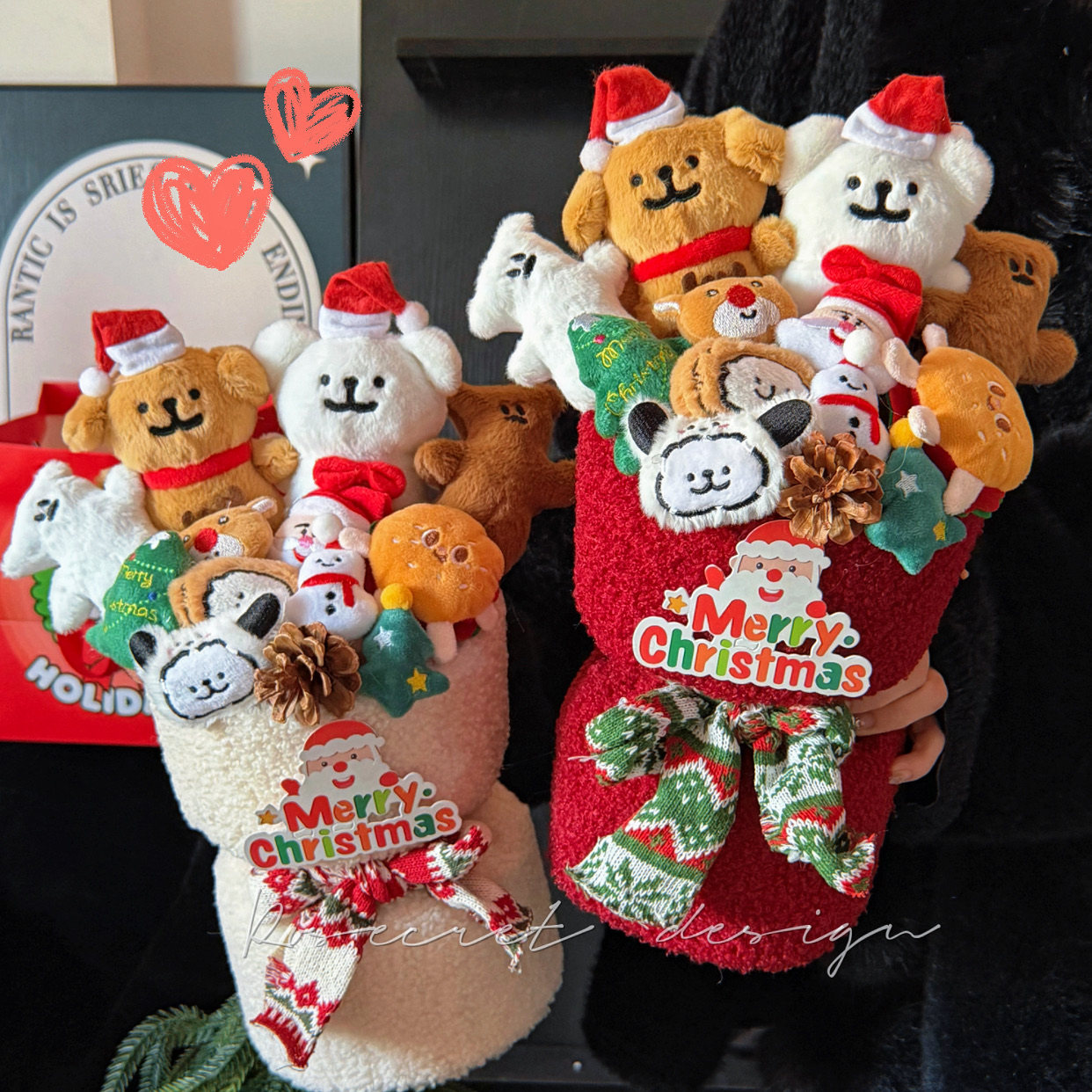 圣诞节礼物创意小熊麋鹿玩偶花束玫瑰针织花送儿童女生平安夜礼品