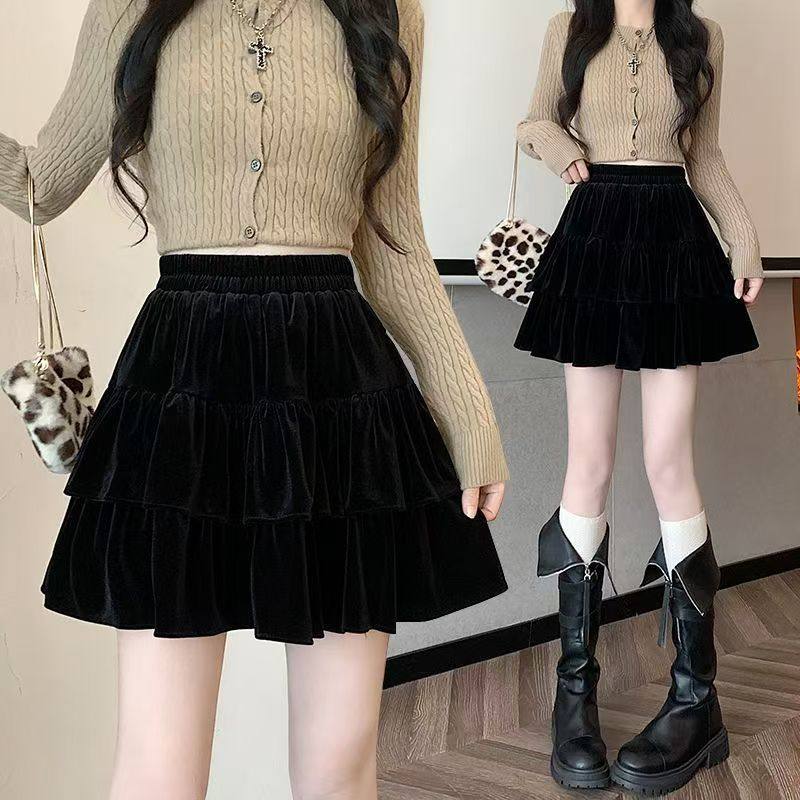 金丝绒半身裙女2024新款秋冬款高腰小个子复古a字蓬蓬蛋糕短裙裤