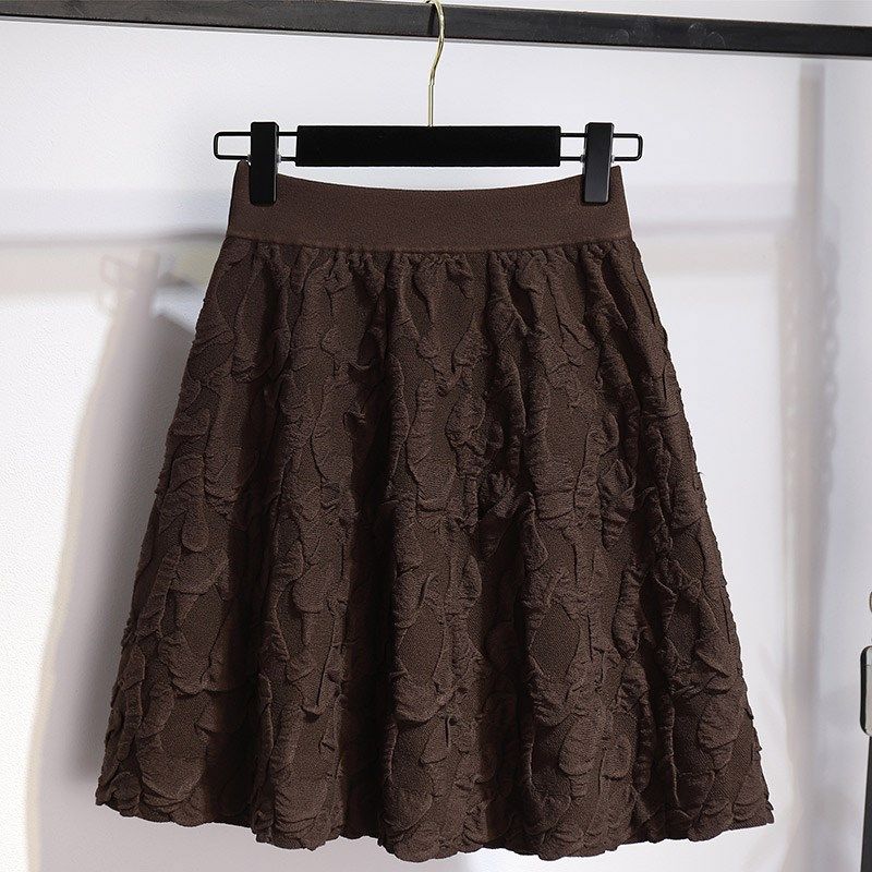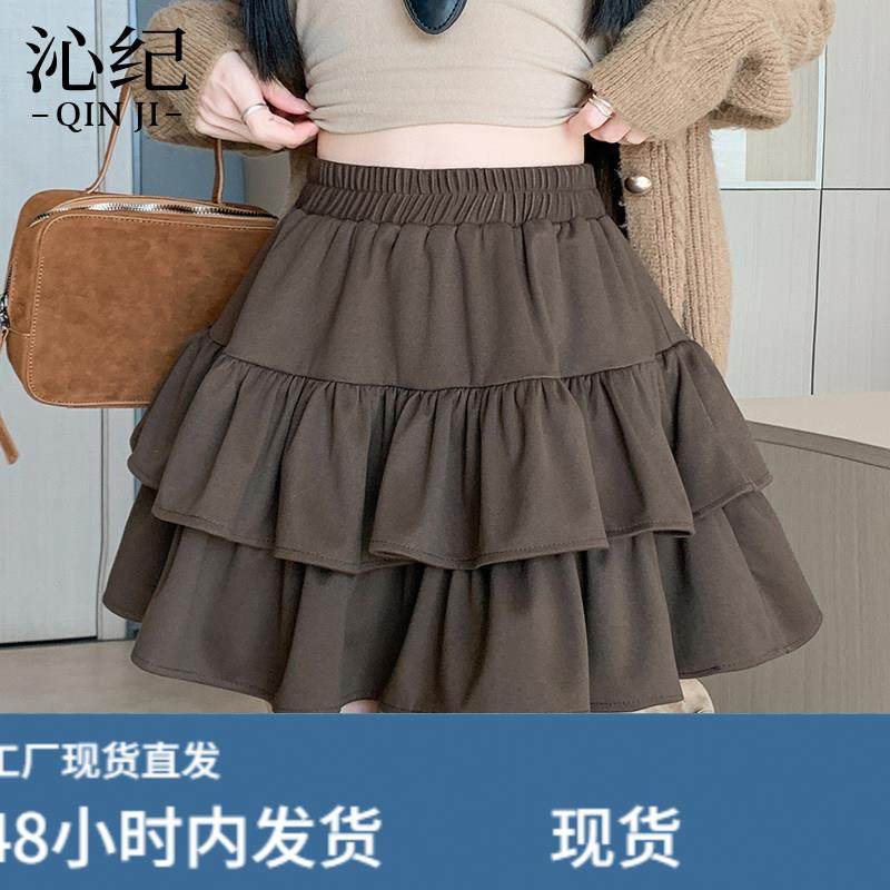 咖色荷叶边半身裙女2026秋冬款小个子高腰显瘦蛋糕裙a字蓬蓬短裙