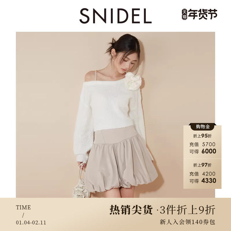 SNIDEL秋冬款甜美百搭高腰花苞蓬蓬A字半身短裙SWFS245110