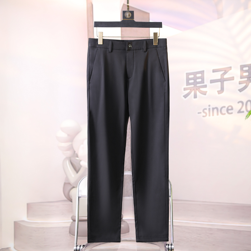 2025男士隐形松紧腰休闲九分西裤修身小脚高级感垂感加绒西装男裤