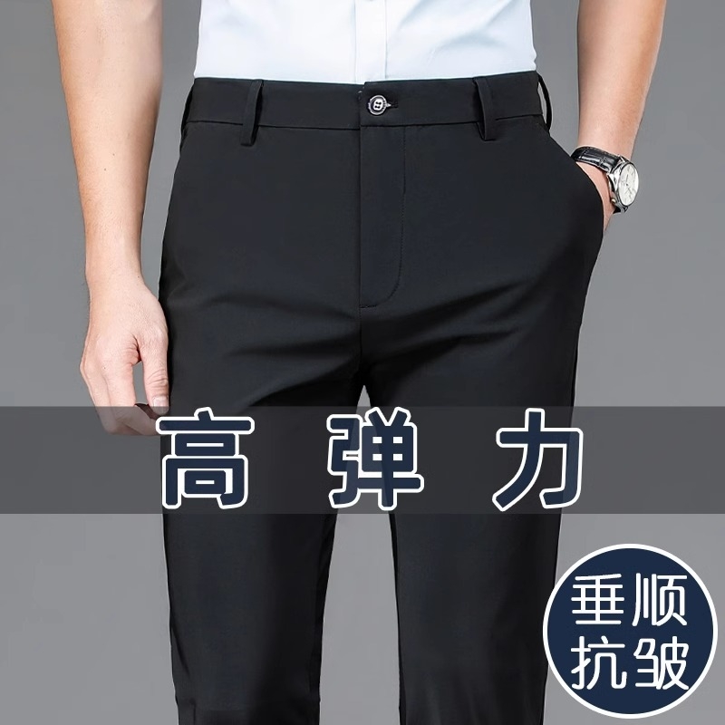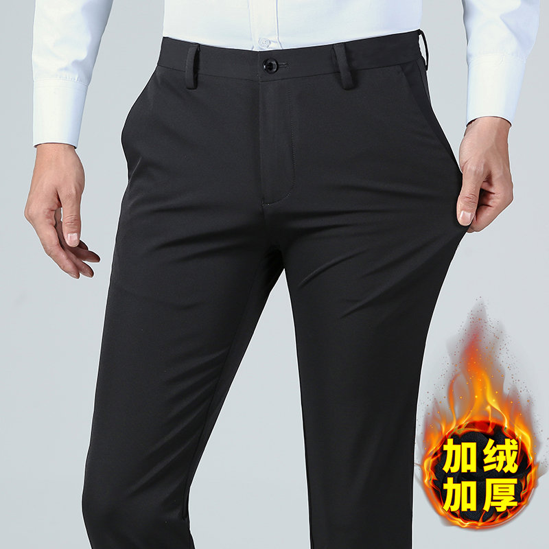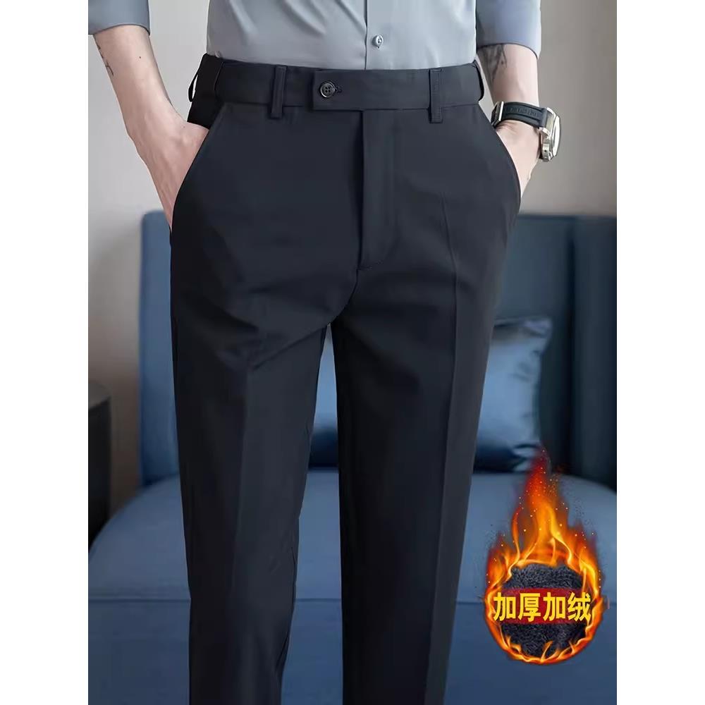 【加绒加厚】男士休闲裤秋冬免烫直筒西装腰弹力长裤子抗皱西裤男