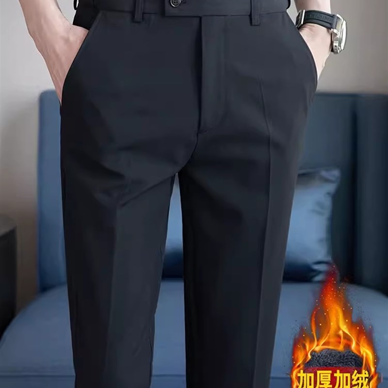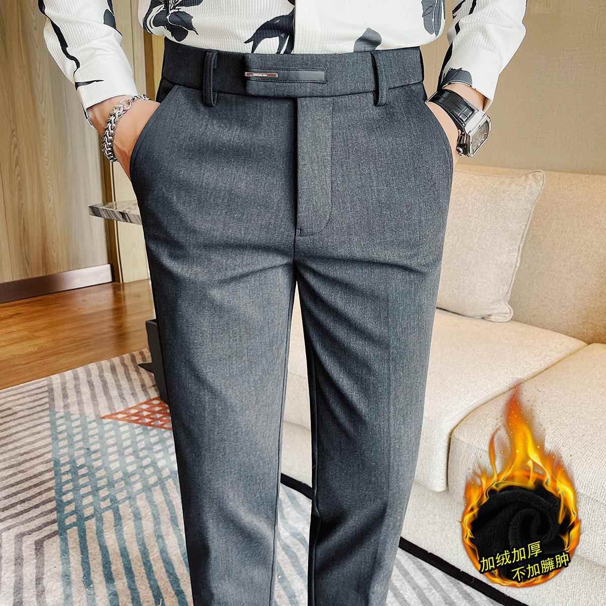 传棨加绒西裤男商务正装裤男加厚修身直筒西服裤子冬季职业西装裤