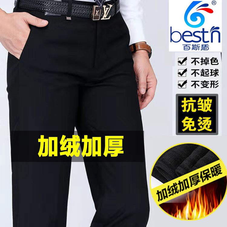 百斯盾羊毛加绒西裤男士高档秋冬季加厚职业西装裤免烫爸爸装冬裤