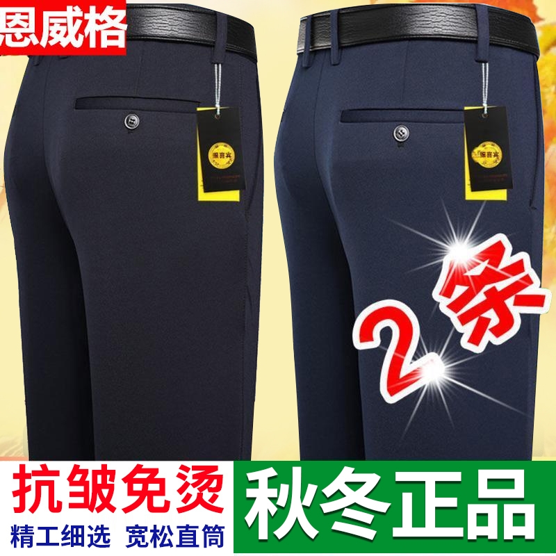 中老年西裤男士高腰宽松直筒春秋厚款爸爸装休闲裤免烫冰加绒加厚