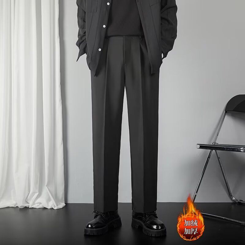 秋冬季加绒西裤男休闲宽松帅气直筒长裤垂感免烫简约松紧腰裤子男