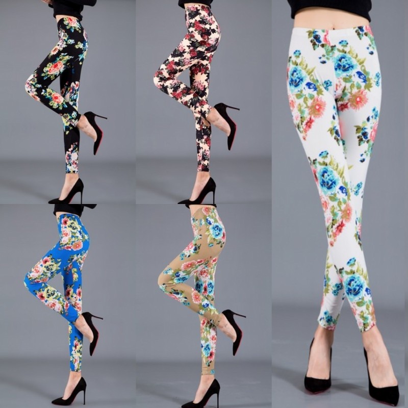 潮春夏弹力高腰印花打底裤外穿莫代尔棉薄显瘦九分女小脚长裤大码