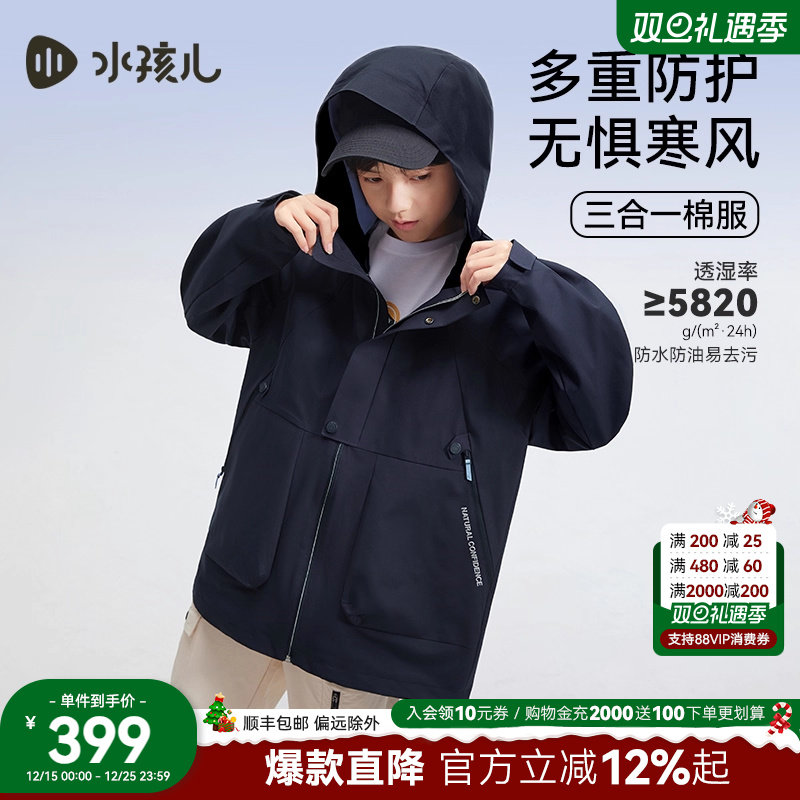 【3合1】水孩儿儿童棉服男童风衣三防秋冬新品女童两件套夹棉外套