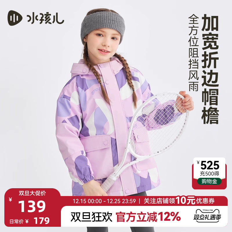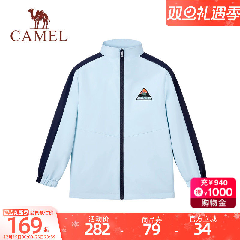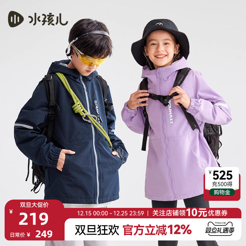 小骆驼儿童外套冬2025新款防泼水连帽户外运动女童登山服男童风衣