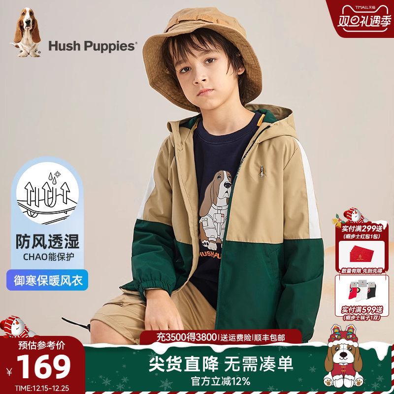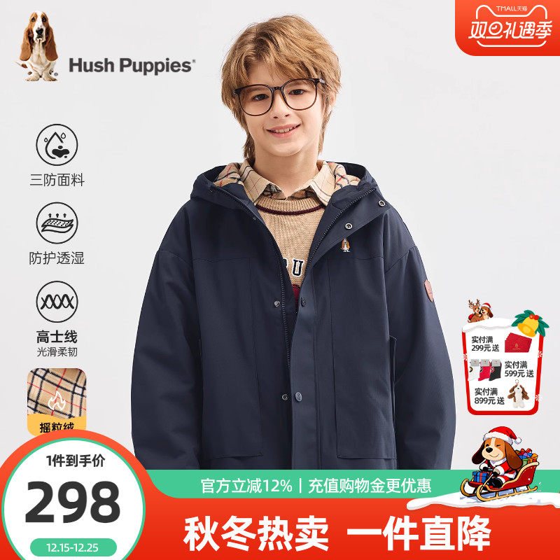 暇步士童装男童风衣25秋冬新品中大童三防外套透湿儿童加绒厚外套
