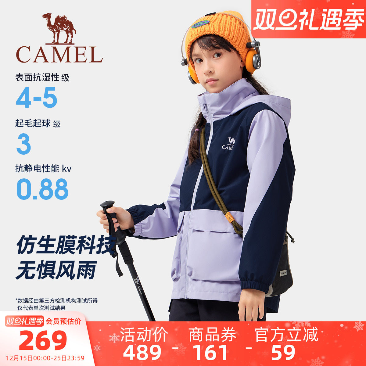 骆驼儿童冲锋衣三合一新款户外登山服防风防水中大童风衣男童外套