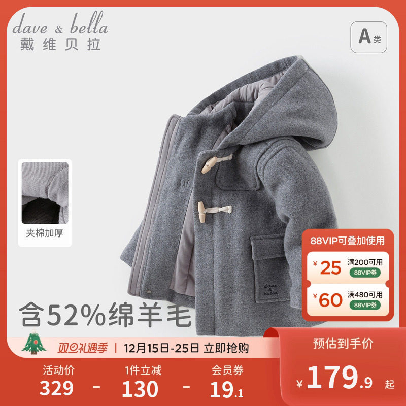 戴维贝拉儿童棉服冬装2025新款男童风衣棉衣毛呢工装休闲外套童装