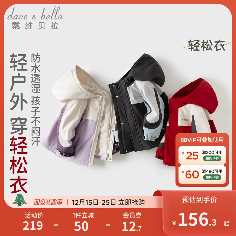 戴维贝拉儿童棉服外套冬装男童女童防水风衣男孩新年红色棉袄衣服