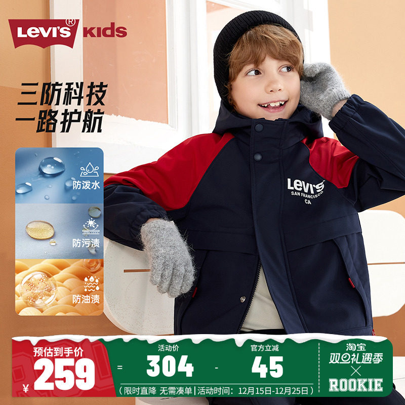 李维斯儿童装男童风衣2025冬季新款大小童防风抗寒保暖夹克外套潮