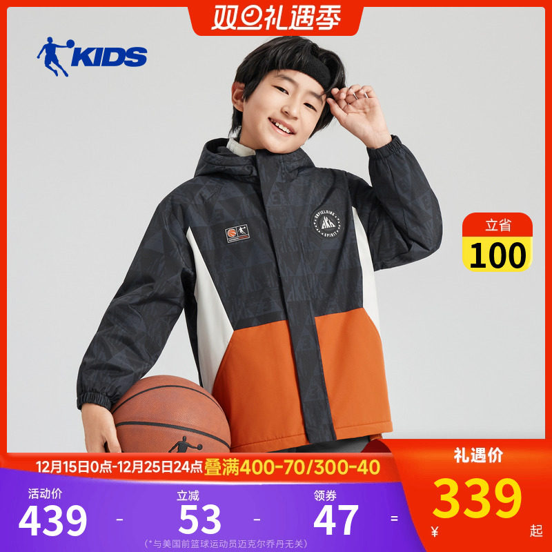 商场同款乔丹童装男童风衣外套2025冬季新款大童加绒保暖潮酷上衣