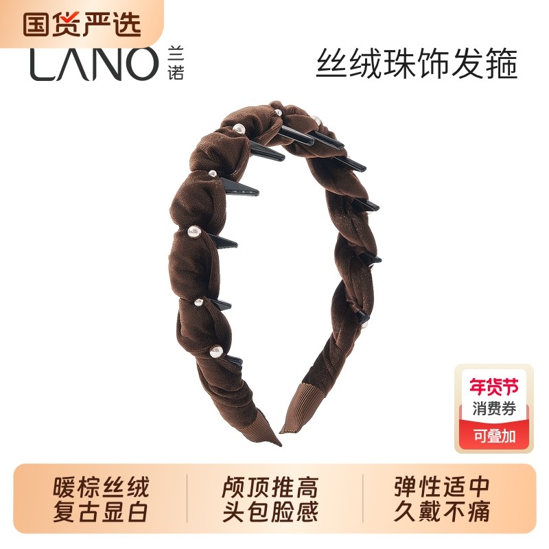 兰诺丝绒珍珠发箍头饰女款带齿高级感洋气时尚2025新款高颅顶头箍