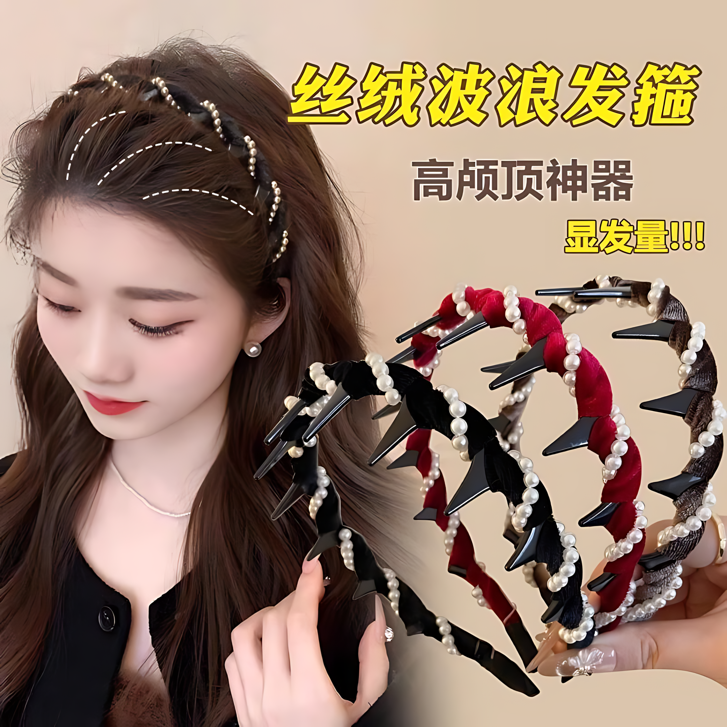 珍珠丝绒波浪发箍女日常外戴2025新款高颅顶头箍带齿防滑发卡头饰