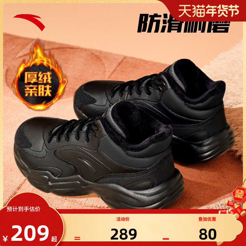 安踏女鞋黑色运动鞋女款妈妈2026新款冬正品皮面软底女士跑步鞋子
