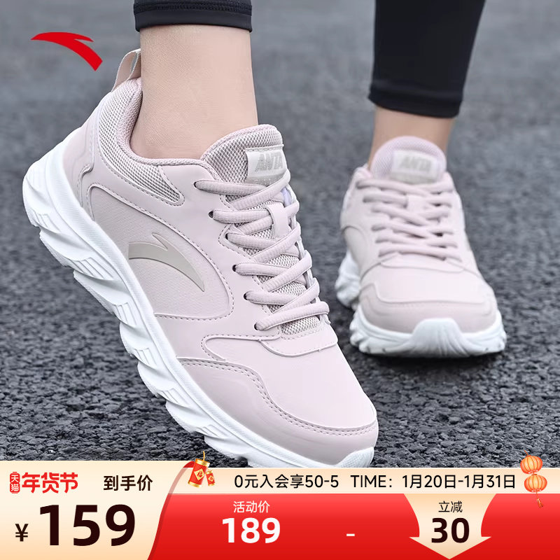 安踏女鞋跑步鞋2025冬季新款皮面防水女士鞋子软底轻便减震运动鞋