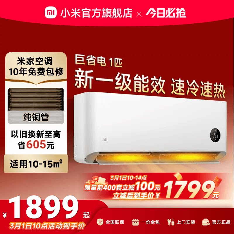小米巨省电空调挂机冷暖两用1.5匹1匹一级能效变频家用智能壁挂式