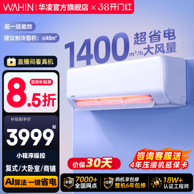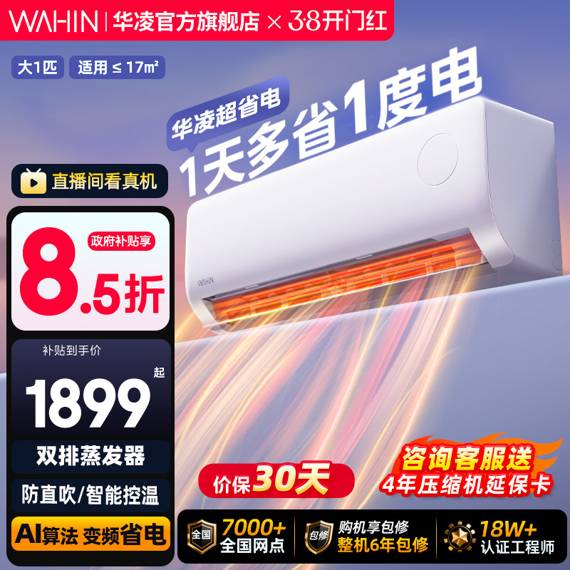 华凌大1匹空调超省电新一级能效冷暖智能壁挂机卧室家用变频官方