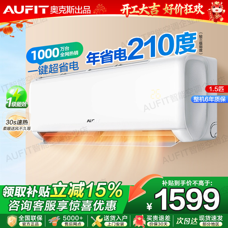 补贴]AUFIT空调奥克斯出品大1.5匹1匹一级能效变频冷暖智能家用2P