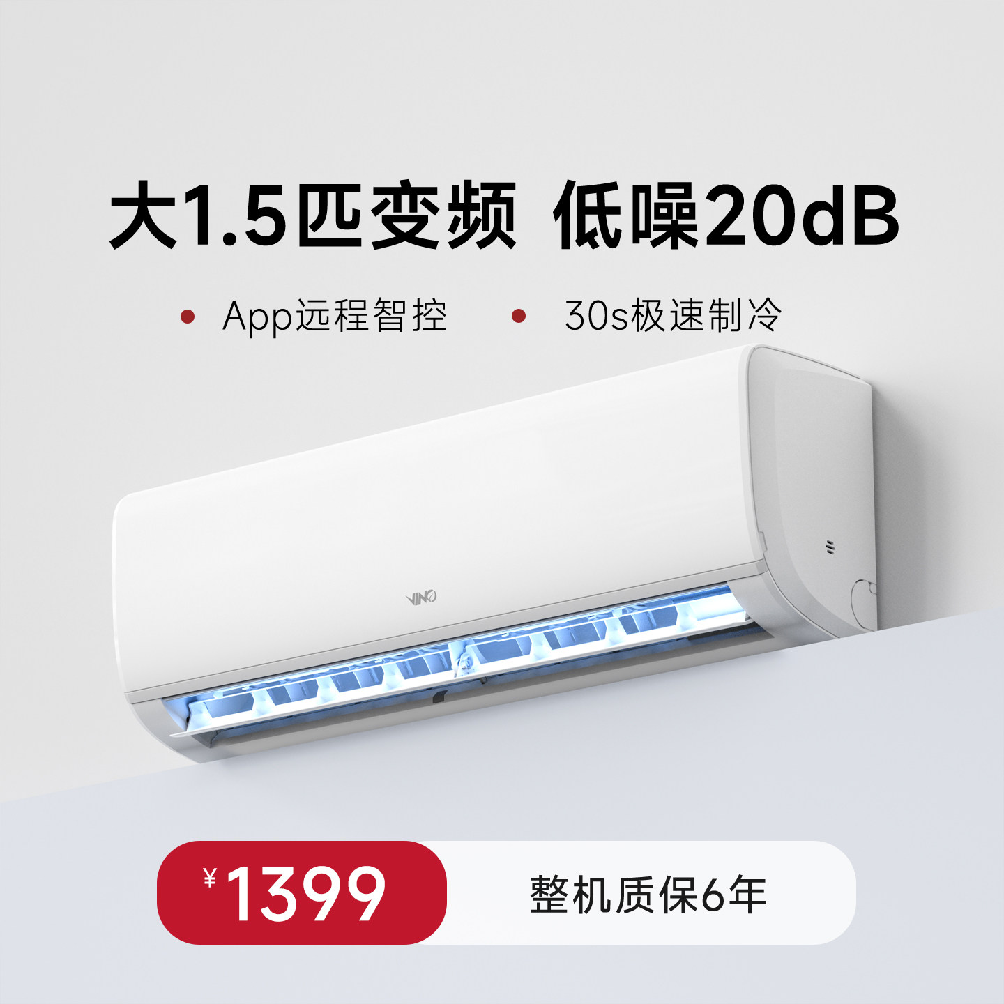 VINO空调大1.5匹变频省电家用智能冷暖一级能效三级挂机以旧换新