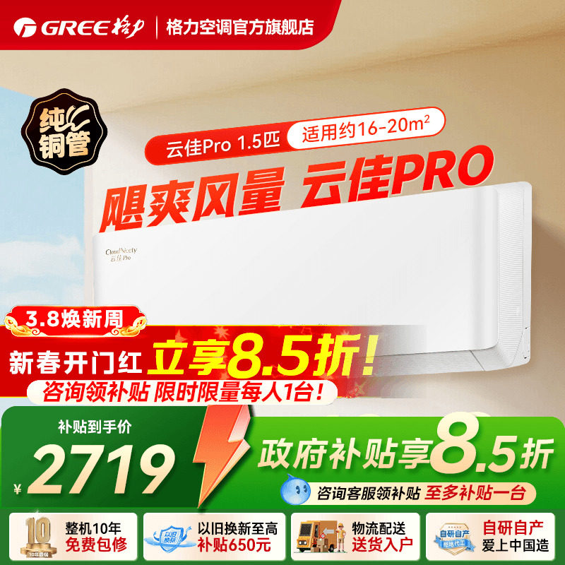 【政府补贴】格力空调1匹正1.5匹新一级变频挂机云佳Pro官方旗舰