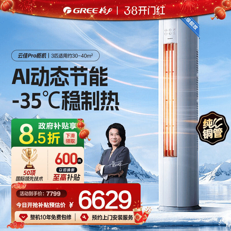 政府补贴】格力空调新一级2匹3匹变频立式柜机云佳Pro官方旗舰店