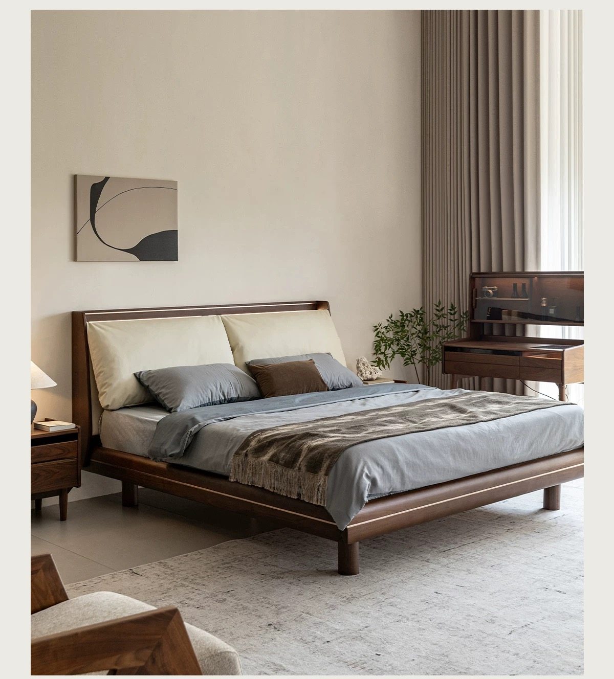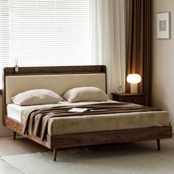 出乎生活隐山床实木悬浮床黑胡桃木北欧主卧日式中古1.8米双人床