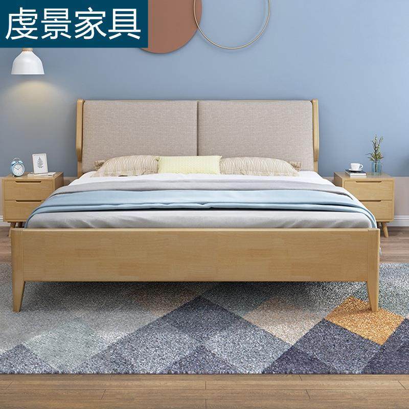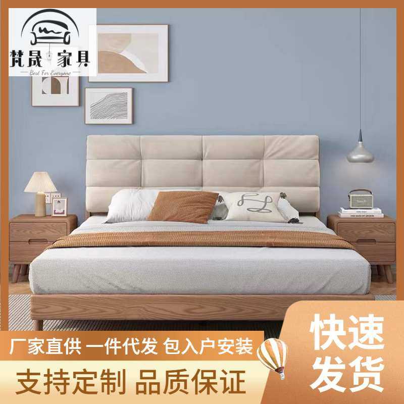 北欧日式实木床现代简约1.8米1.5米双人软靠床主卧床出租房小户型