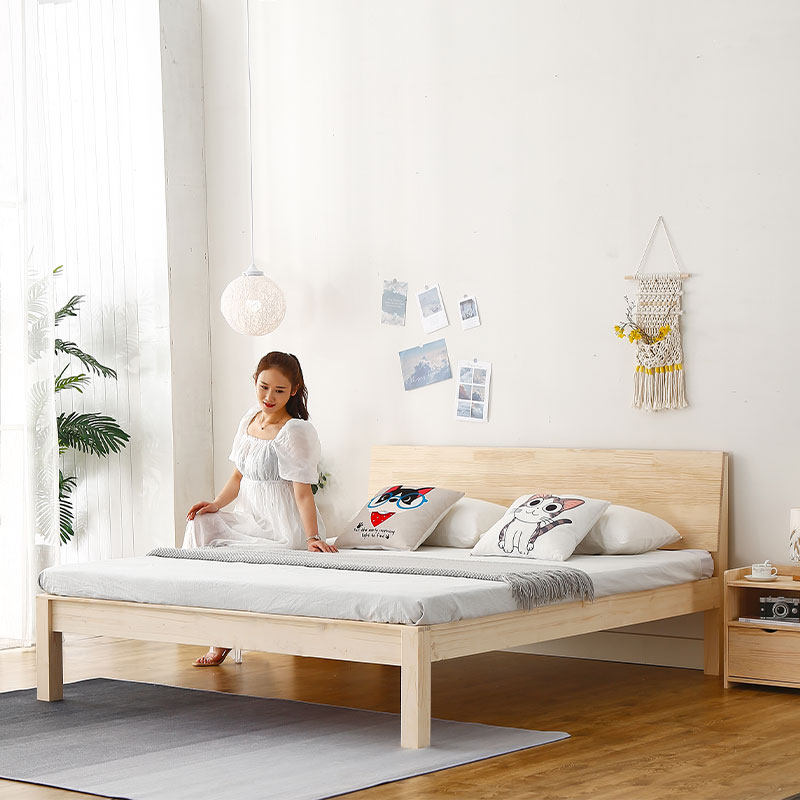 日式实木床现代简约家具米小户型双人床卧室原木大床全实木松木床