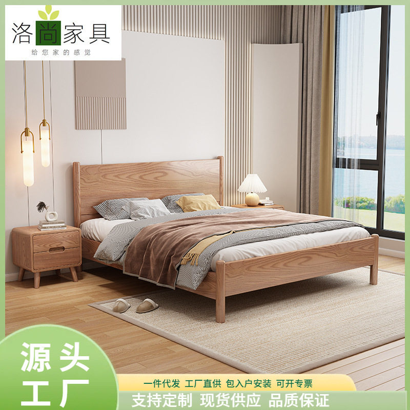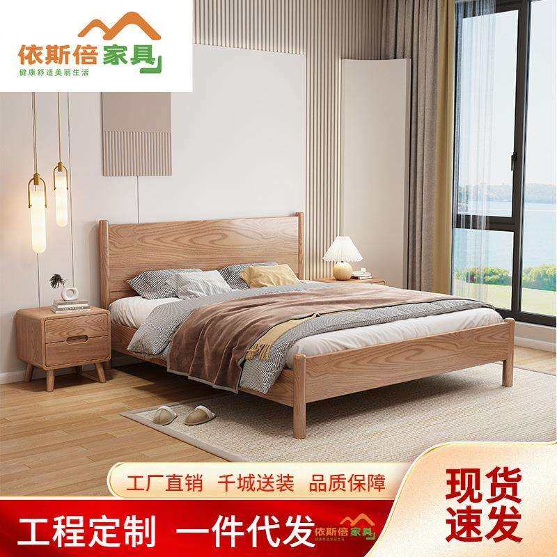 现代北欧日式实木床白蜡木简约主卧婚床原木风卧室1.8米单双人床