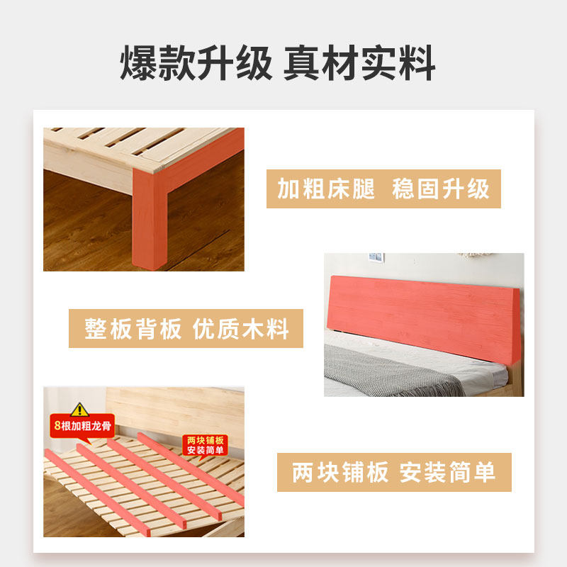 榻榻米床落地式日式实木床1.5米简易松木双人床1.8租房床1.2隔潮
