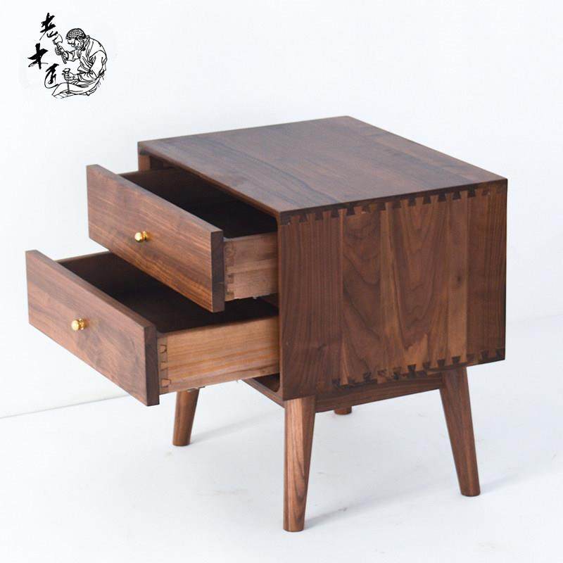床头柜北欧简约现代日式实木床头柜原木色黑胡桃橡木床边柜储物柜