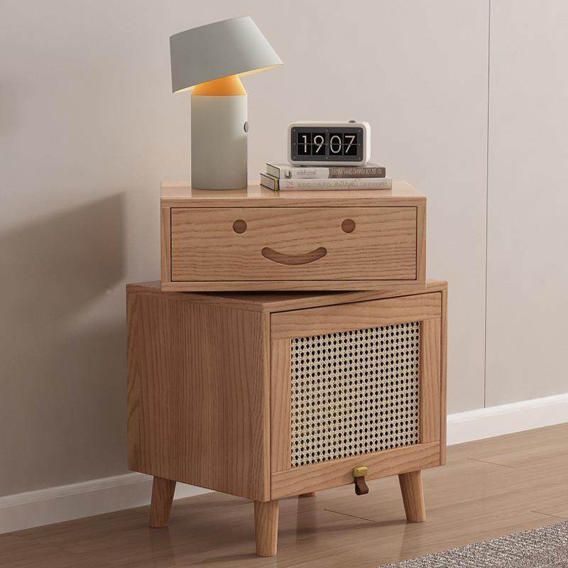 日式实木床头柜简约现代小型藤编床边柜家用床头置物柜落地小柜子